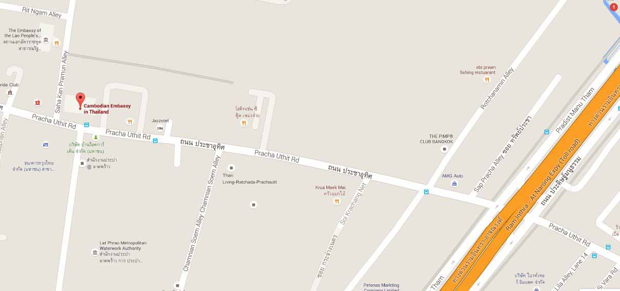 – Taxi to Th. Pracha Uthit, Khmer Embassy 55 Baht.